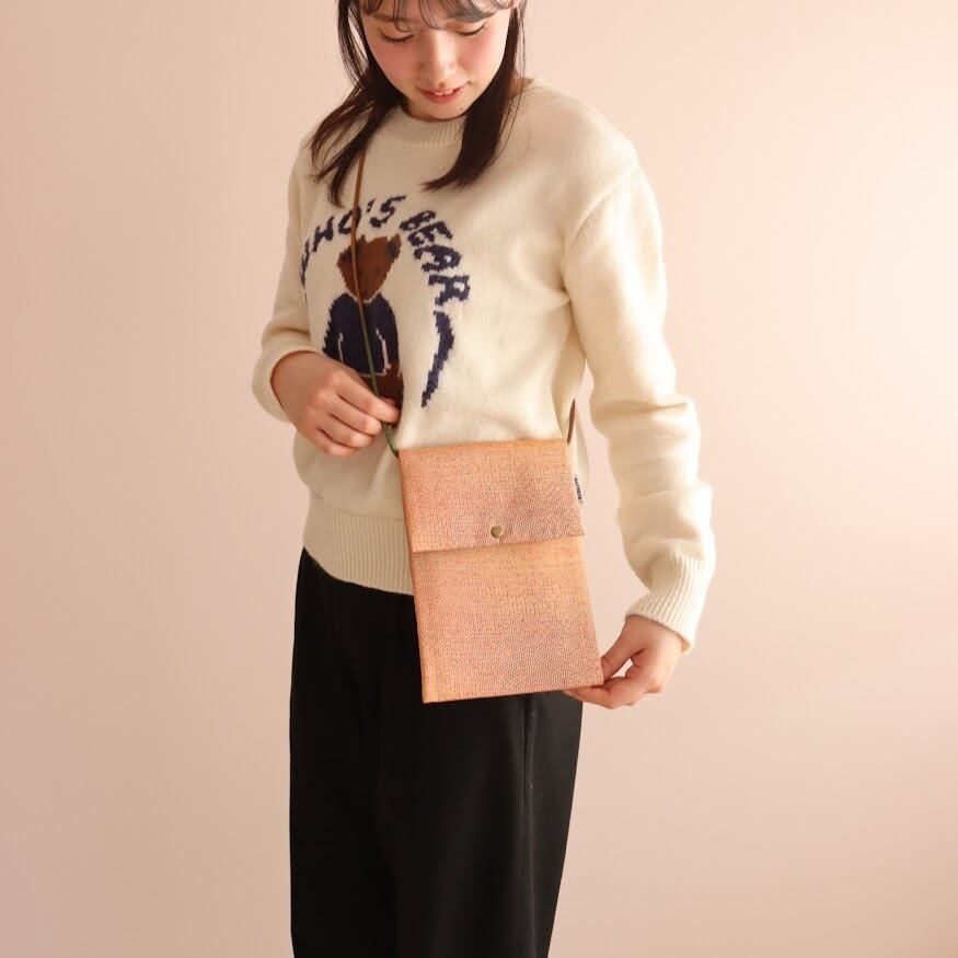 日和 越後紬 吉沢織物 正絹シルク100%日本伝統織物ハンドメイドバッグ 軽くてかわいい ぺたんこポーチ MOTTETE 日本製j上品サコッシュ ギフトおすすめ品