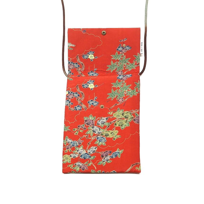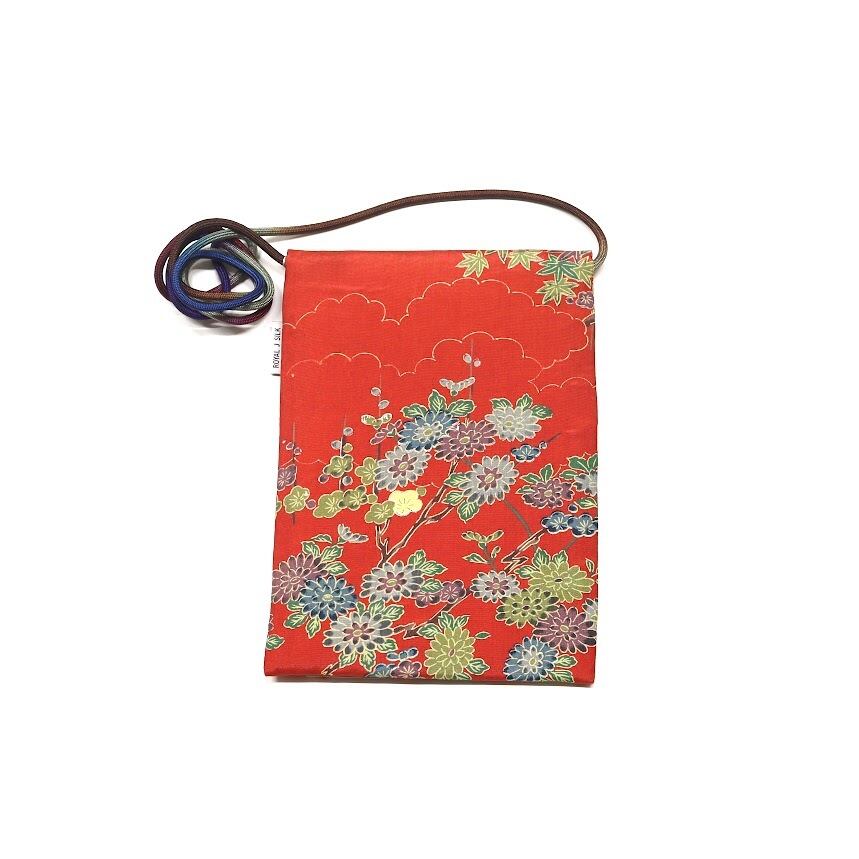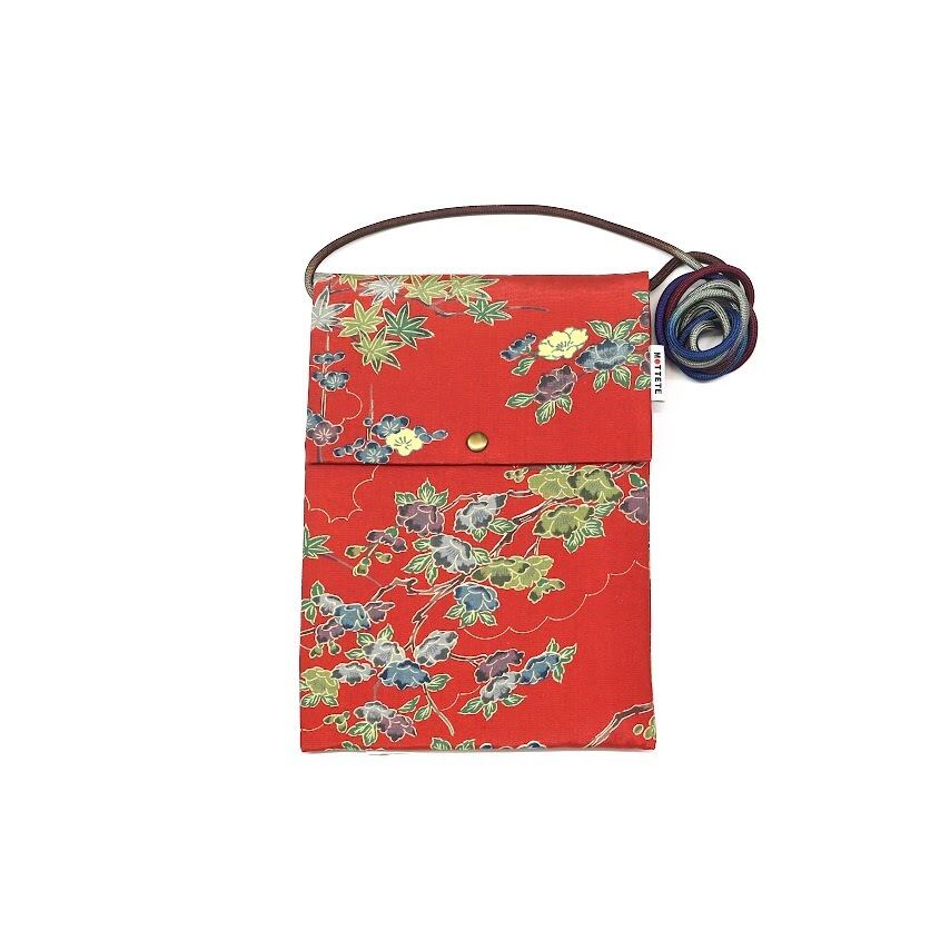 愛加那 紅 大島紬織 正絹シルク100%日本伝統織物ハンドメイドバッグ 軽くてかわいい ぺたんこポーチ MOTTETE 日本製j上品サコッシュ ギフトおすすめ品