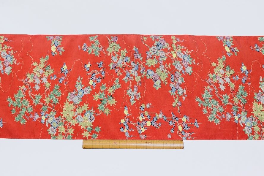 紅 大島紬織 加賀染五彩 加那小紋 草加瑞雲文様