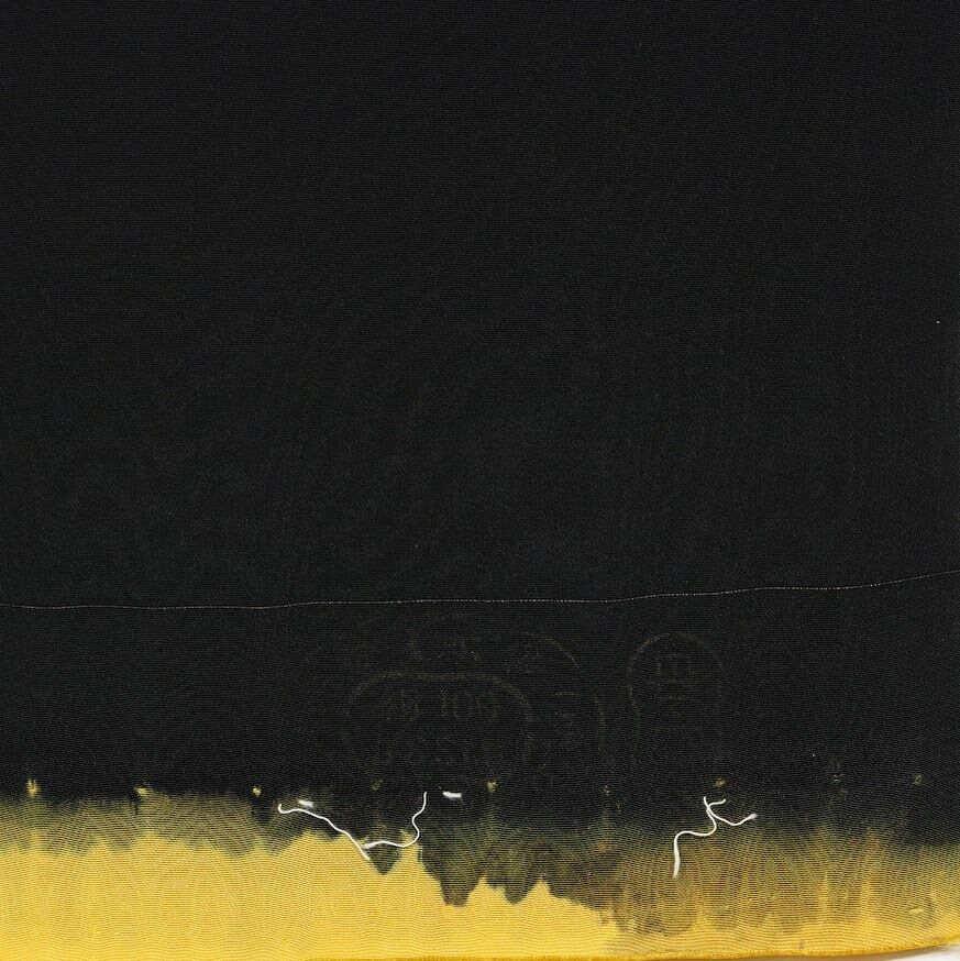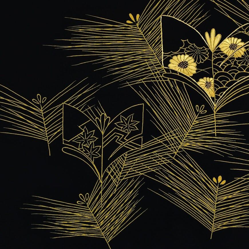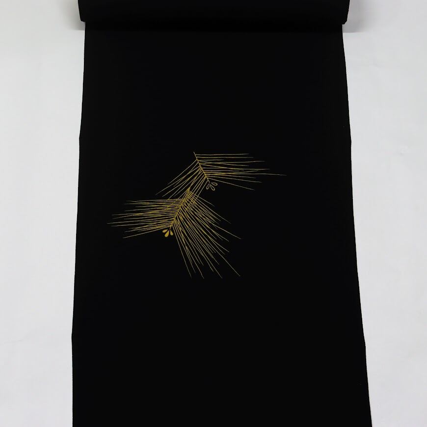 黒地丹後ちりめん黄黒染松葉吹寄紅葉菊文様